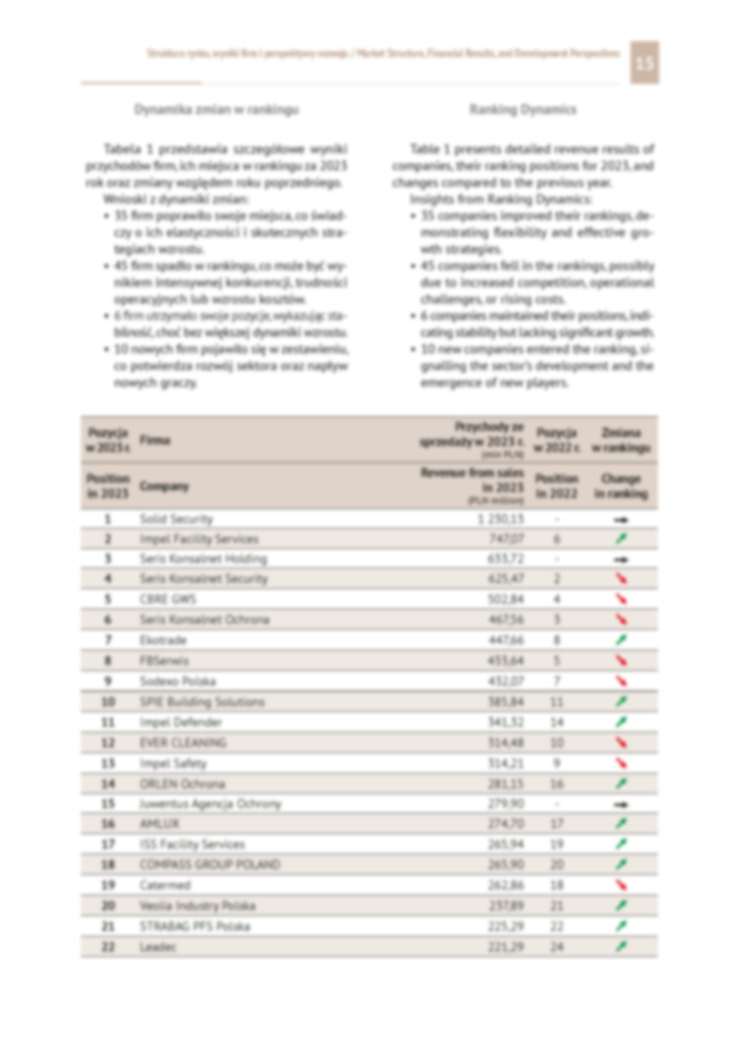 Ostatni raport to wyjątkowa, dwujęzyczna (polsko-angielska) publikacja naukowa, autorstwa Zbigniewa Mazurka we współpracy z Iwoną Foryś, opublikowana nakładem Grupy Wydawniczej FNCE przy wsparciu Polskiej Rady Facility Management. Prezentuje kompleksową analizę danych z lat 2019–2023, obejmując 96 firm świadczących usługi FM.